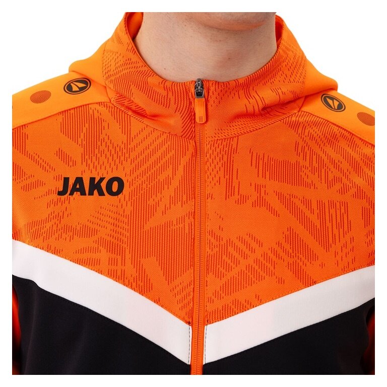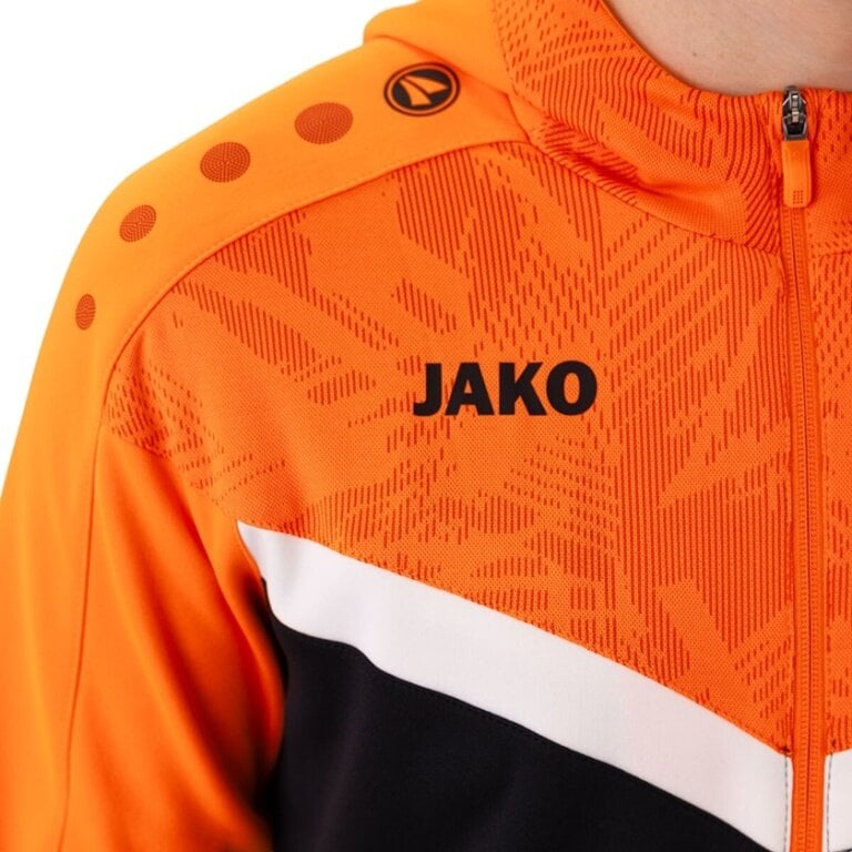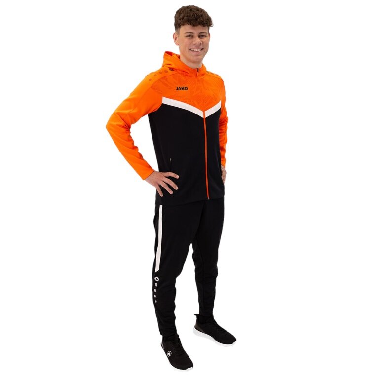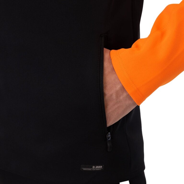 JAKO Kurtka z kapturem Iconic (Fleece z poliestru, kieszenie boczne z zamkiem błyskawicznym) czarna/neonpomarańczowa męska