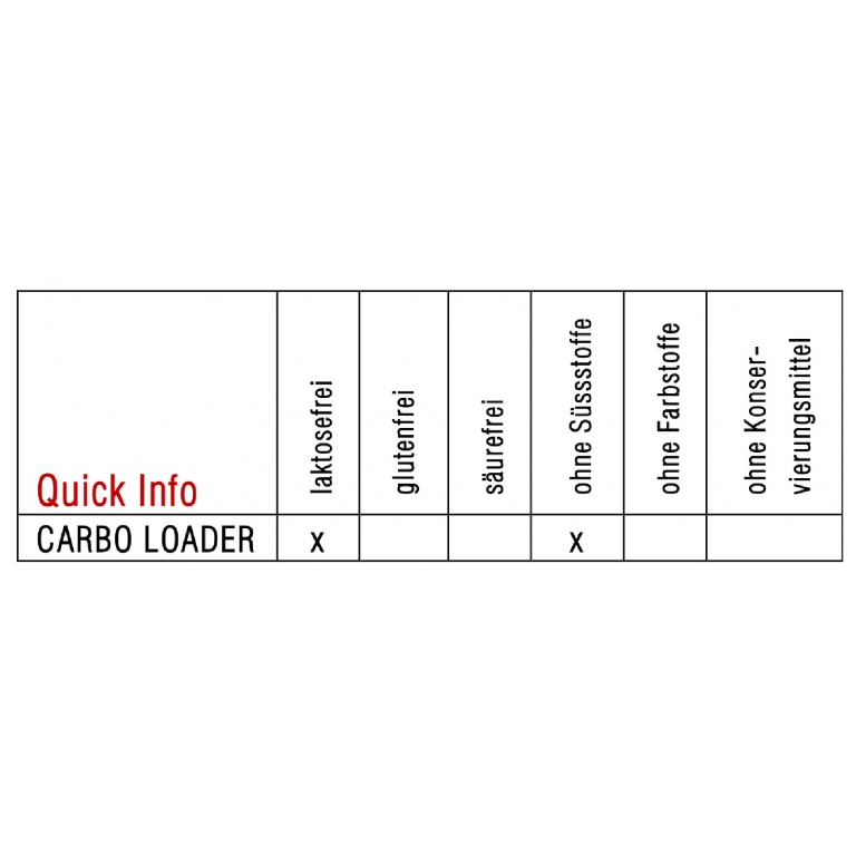 • to wymaga bardzo wysokiego spożycia węglowodanów, co można wygodnie zrealizować dzięki CARBO LOADER, bez konieczności spożywania ogromnych ilości makaronu lub ziemniaków