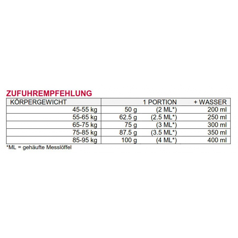 • Stosowanie: do efektywnego ładowania węglowodanów w dniu poprzedzającym zawody oraz podczas intensywnych obozów treningowych i do regeneracji w dniu po zawodach