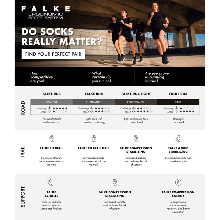 • dzięki swojej dodatkowej mocnej wyściółce skarpetki biegowe "RU3" są idealne dla okazjonalnych biegaczy.