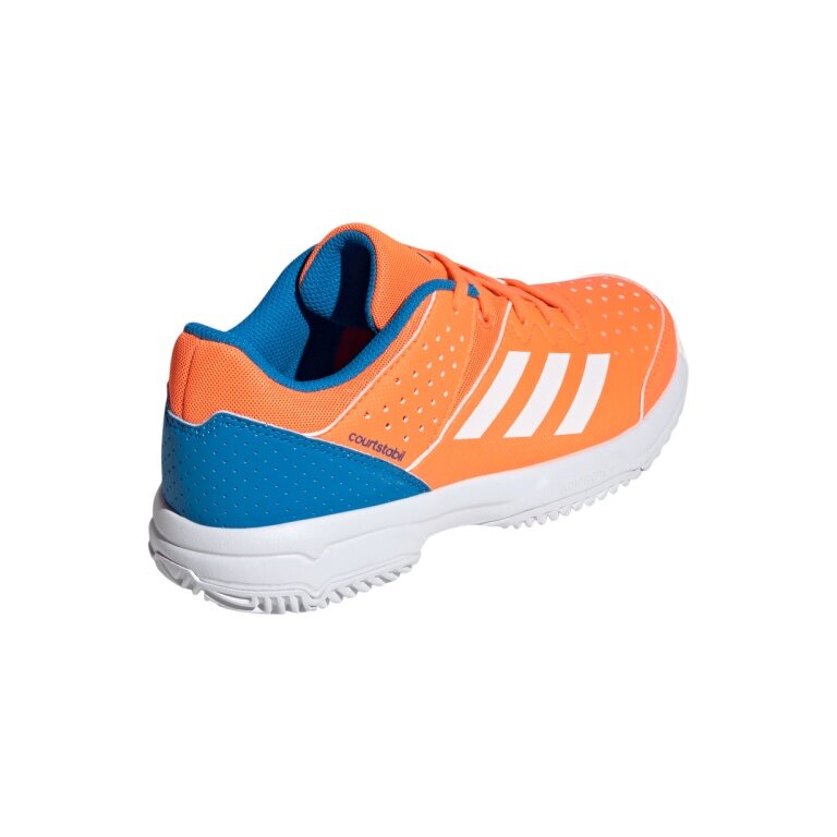 adidas halowe buty do tenisa Court Stabil 2025 pomarańczowo-niebieskie dziecięce