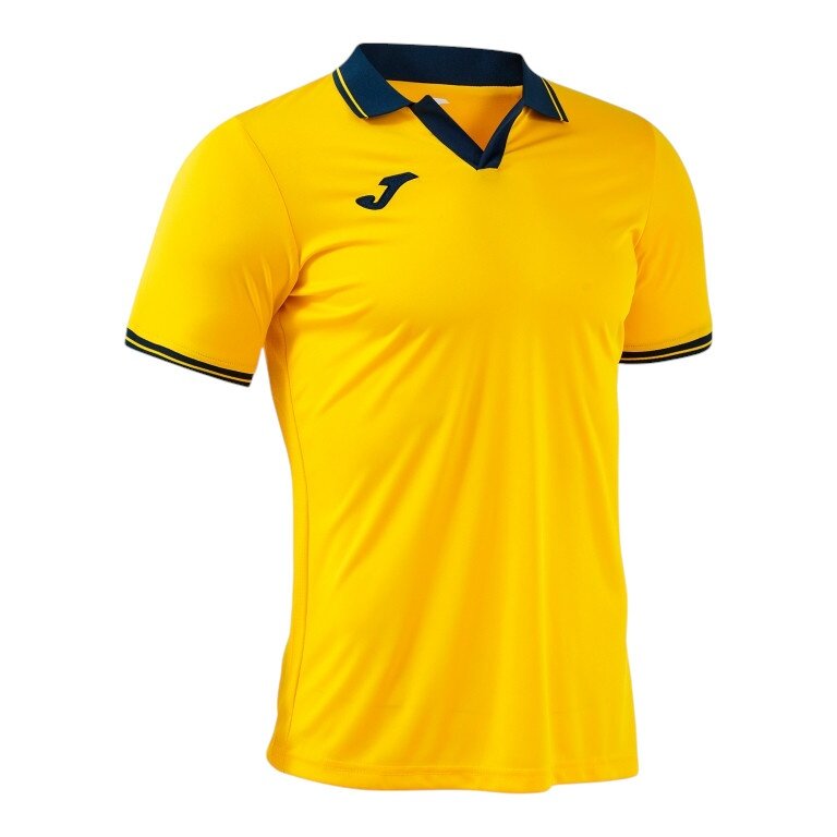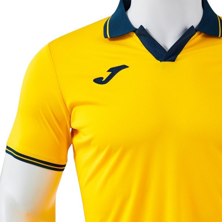Joma Polo tenisowe Galaxy (100% rec. poliester, lekki, oddychający) żółty/navy niebieski mężczyźni