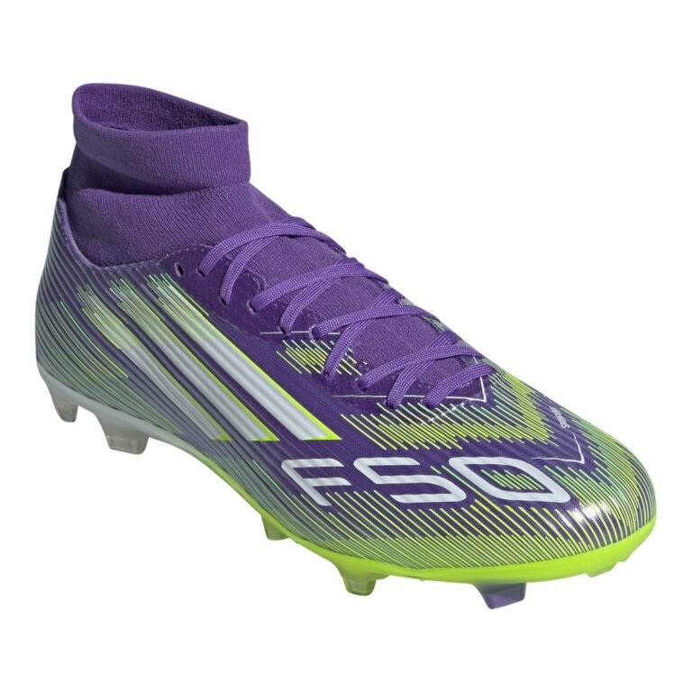 adidas buty piłkarskie F50 League MID FG/MG (sztuczna trawa, na twarde nawierzchnie) fioletowy/biały/lime męskie