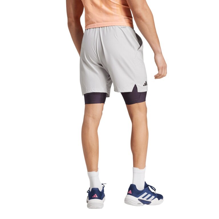 adidas spodenki tenisowe Pro Aeroready 2w1 (krótkie+obcisłe) szare/czarne męskie