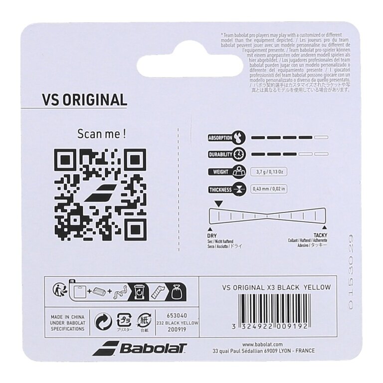Babolat Overgrip VS Grip Original Feel (suchy, gładki) 0.43mm czarny/żółty - 3 sztuki
