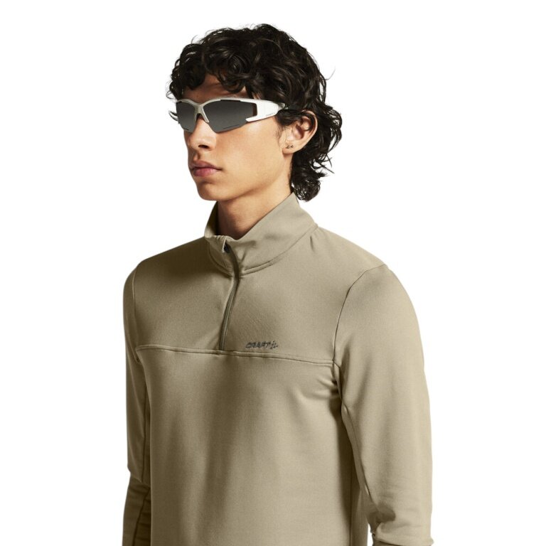 Craft Koszulka sportowa z długim rękawem CORE Gain (średnia warstwa, pół-zamek) beżowa Męska