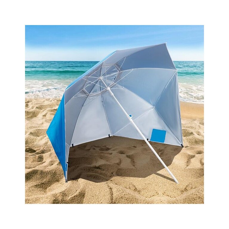 - boczne ścianki zapewniają stabilność parasola plażowego i dają przede wszystkim możliwość ochrony przed wiatrem i słońcem.