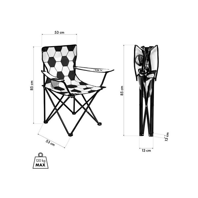 - NILS CAMP NC3303 to składany fotel campingowy, który zapewnia komfort i wsparcie podczas relaksu na łonie natury.