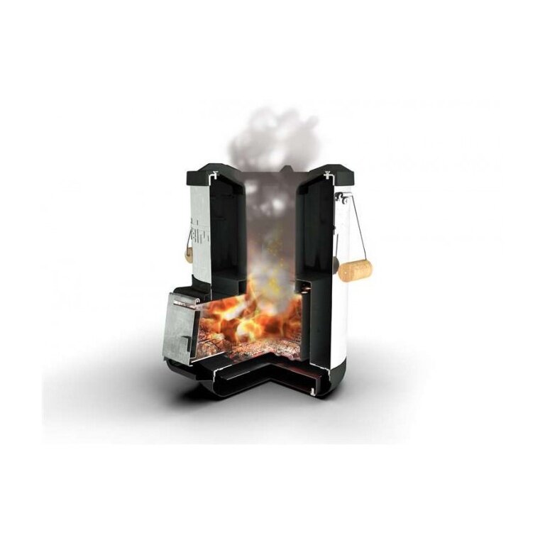 • piec rakietowy Petromax rf33 skutecznie łączy efekt komina i zasadę gazowania drewna dzięki optymalnemu dopływowi powietrza, co pozwala na ekstremalnie efektywne spalanie biomasy
