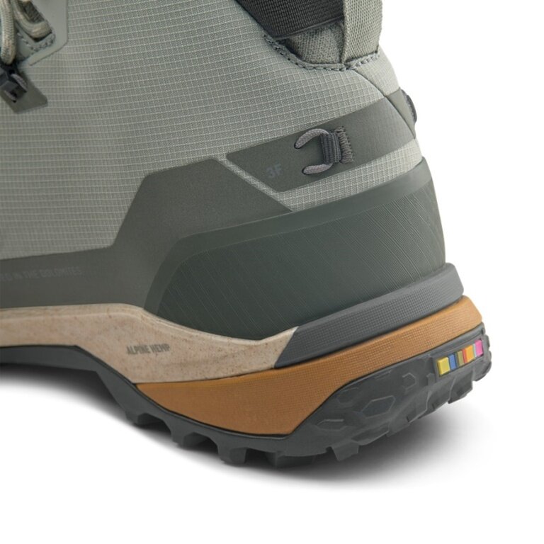 podkładka Alpine Hemp w przedniej części stopy została opracowana zgodnie z koncepcją produkcji zorientowaną na gospodarkę cyrkularną, w której wykorzystuje się recyklingowane odpady konopne i nowy konopie, a użycie nowego EVA jest ograniczone