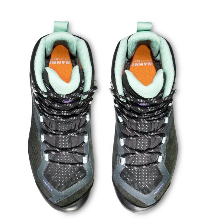 • Technologia Mammut Flextron® wspiera naturalne przetaczanie stopy, co zapewnia efektywniejsze wykorzystanie energii podczas wędrówek i wspinaczki