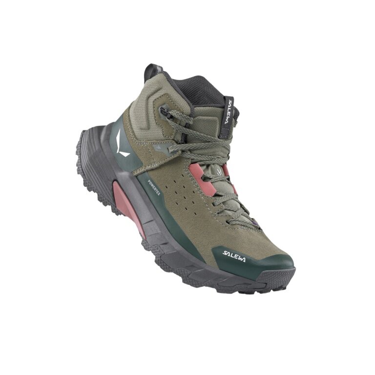 Salewa buty trekkingowe Pedroc 2 Leather MID PTX (zamsz, Speed-Hiking, wodoodporne) ciemnozielone/szare damskie