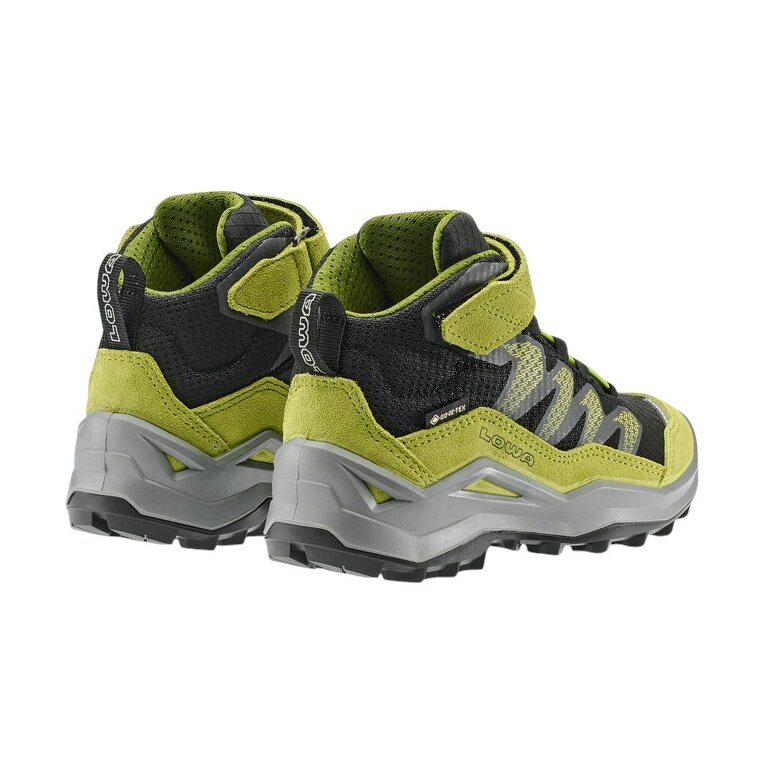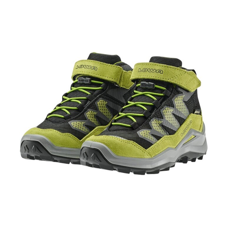 Lowa buty trekkingowe Maddox Pro Mid GTX na rzep Junior (tekstylia/skóra zamszowa, zapięcie na rzep, wodoodporne) czarne/limonkowe dziecięce