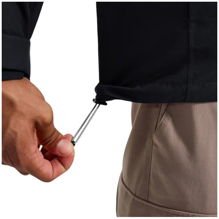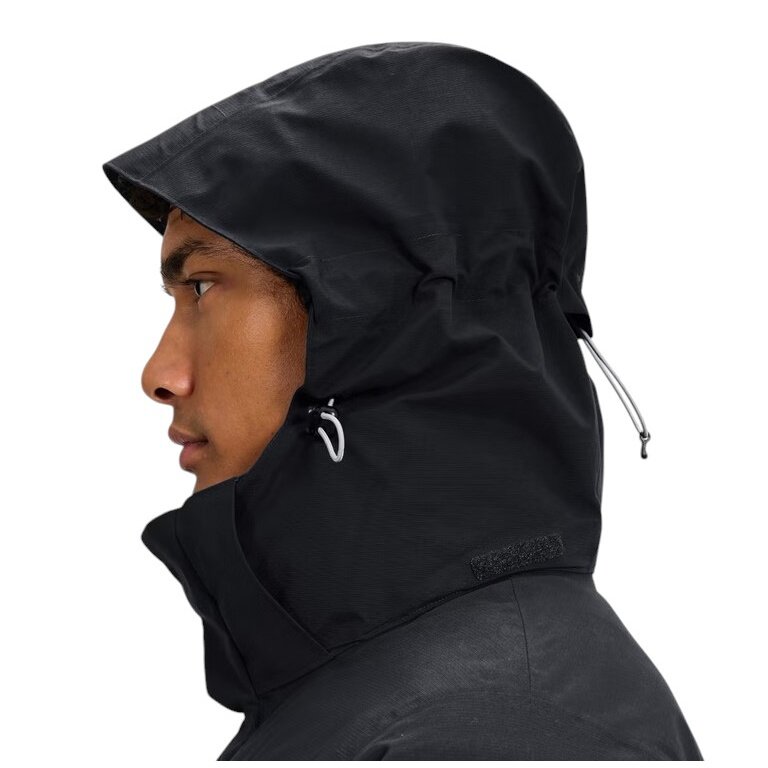 • Ustawienie kaptura na dwa punkty zapewnia dopasowanie, które chroni przed deszczem z każdej strony.