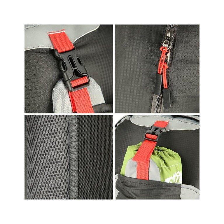 - tył plecaka, szelki i pas biodrowy są obszyte specjalną siatką, aby ciało nie miało bezpośredniego kontaktu z materiałem, co pozytywnie wpływa na krążenie i zapobiega poceniu