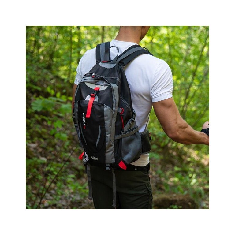 - dodatkowo model JAGERFLY wyposażony jest w boczne i dolne paski kompresyjne, za pomocą których można zmniejszyć lub zwiększyć pojemność plecaka