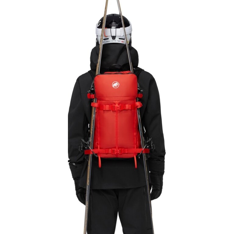 dla twojego sprzętu lawinowego jest osobna kieszeń, abyś był zawsze przygotowany, a dodatkowa wbudowana kieszeń oferuje miejsce na ochraniacz pleców Mammut