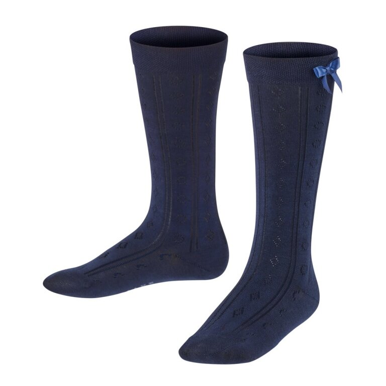 Falke Skarpety do kolan Ajour (z bawełny, wzór Ajour) granatowe dziewczęce - 1 para