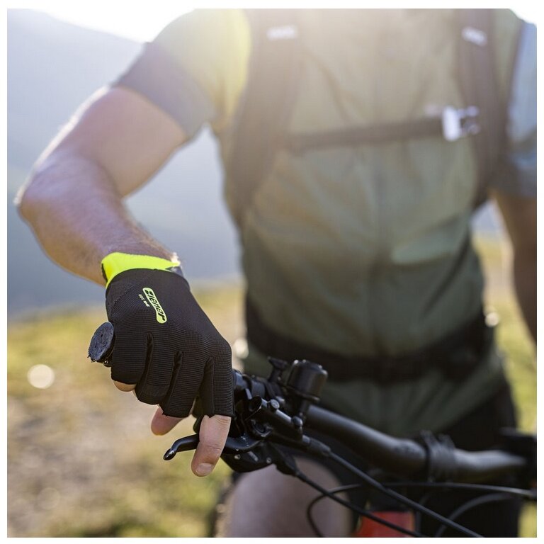 Rękawice rowerowe Ziener Coovi (wyściółka z pianki żelowej, ułatwienie zakładania) czarne/cytrynowe
