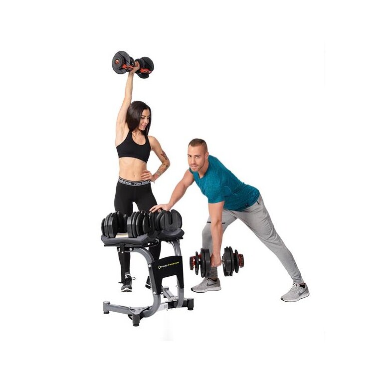 - w modelu SR52 możesz położyć hantel na stacji i zmienić obciążenie za pomocą dwóch pokręteł.