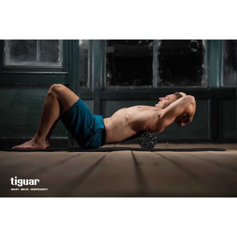 - wysokiej jakości wałek tiguar fascia z gładką powierzchnią i optymalnym, bardzo komfortowym rozmiarem 30 × 15 cm jest zaprojektowany do samomasażu dużych grup mięśniowych.