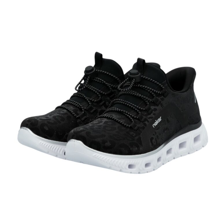 Czarne sneakersy Rieker Low dla kobiet z wysokiej jakości sztucznej skóry.