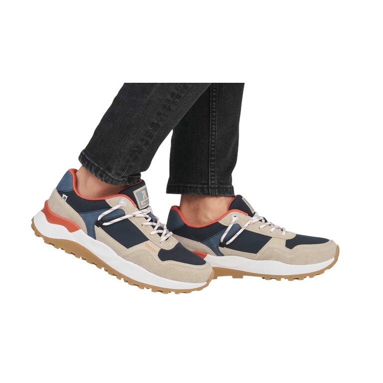 - niebieskie sneakersy Rieker Low dla mężczyzn wykonane z wysokiej jakości tekstyliów.