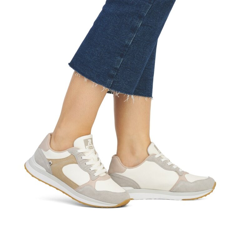 Sneaker Rieker 42508-81 (skóra gładka) biało-beżowy damski