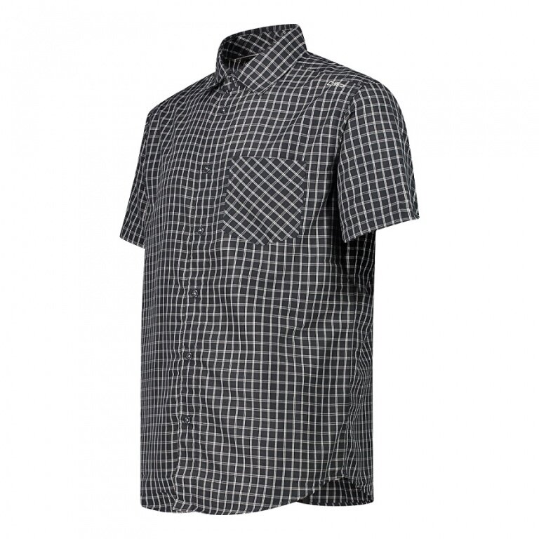 CMP Koszula turystyczna krótki rękaw w kratę (ochrona UV, kieszeń na piersi) antracytowy męski