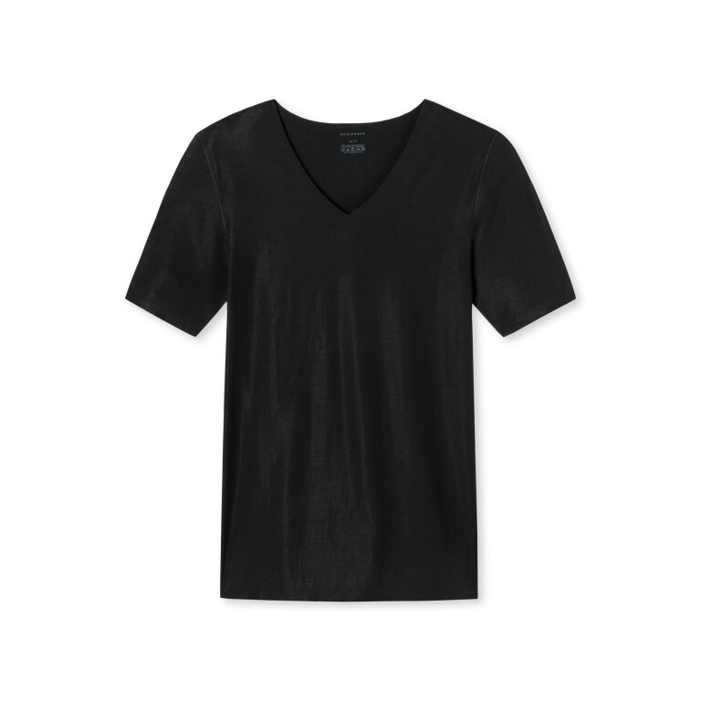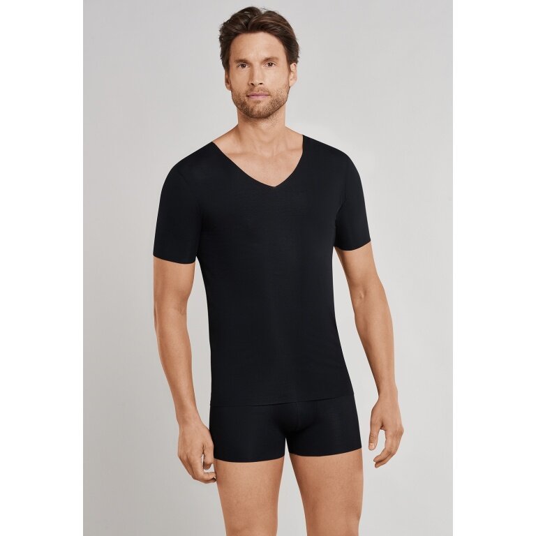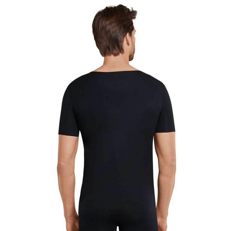 Schiesser T-shirt Seamless V-dekolt Laser Cut Krótki rękaw (Interlock, bezszwowy) Bielizna czarna Mężczyźni