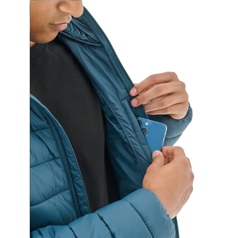 - lekka kurtka z kapturem wypełniona syntetycznym puchem dla mężczyzn to idealny wybór na codzienne i sportowe aktywności w cieplejsze lub pochmurne dni w okresie przejściowym.