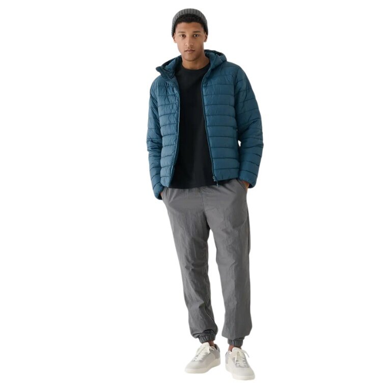 4F Zimowa Kurtka Puchowa M484 z kapturem (ocieplająca dzięki wypełnieniu puchowym) niebieska Męska