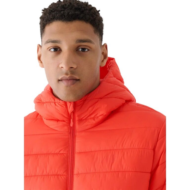 4F Zimowa Kurtka Puchowa M484 z kapturem (ocieplająca dzięki wypełnieniu puchowym) pomarańczowo-czerwona Męska