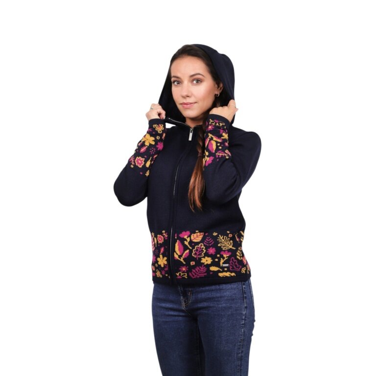 Kama bluza z kapturem 5050 Full Zip (mieszanka wełny merino, wiatroszczelna, oddychająca) granatowa damska