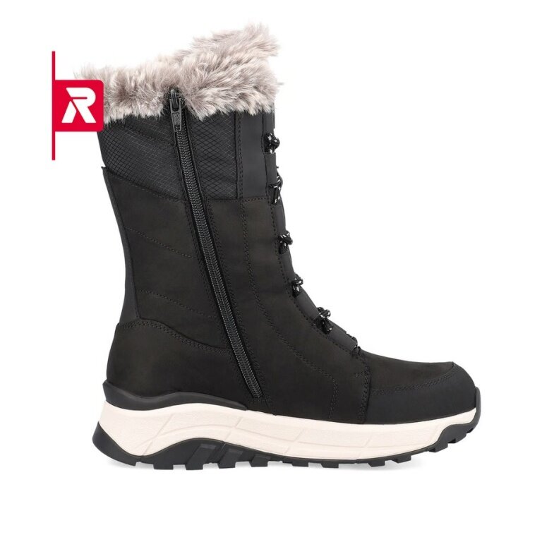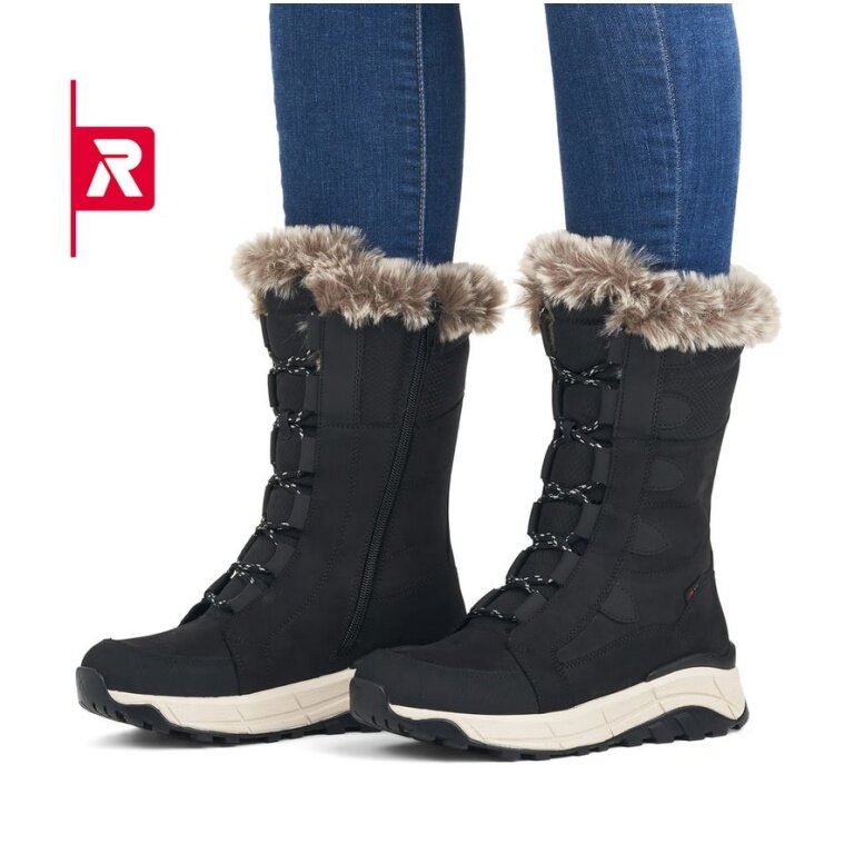 Rieker Zimowe botki Evolution W0070-00 Zamsz (botki z bocznym zamkiem błyskawicznym i podszewką) czarne Damskie
