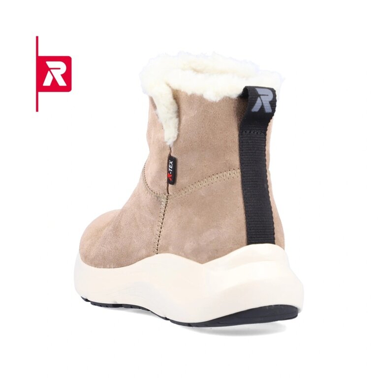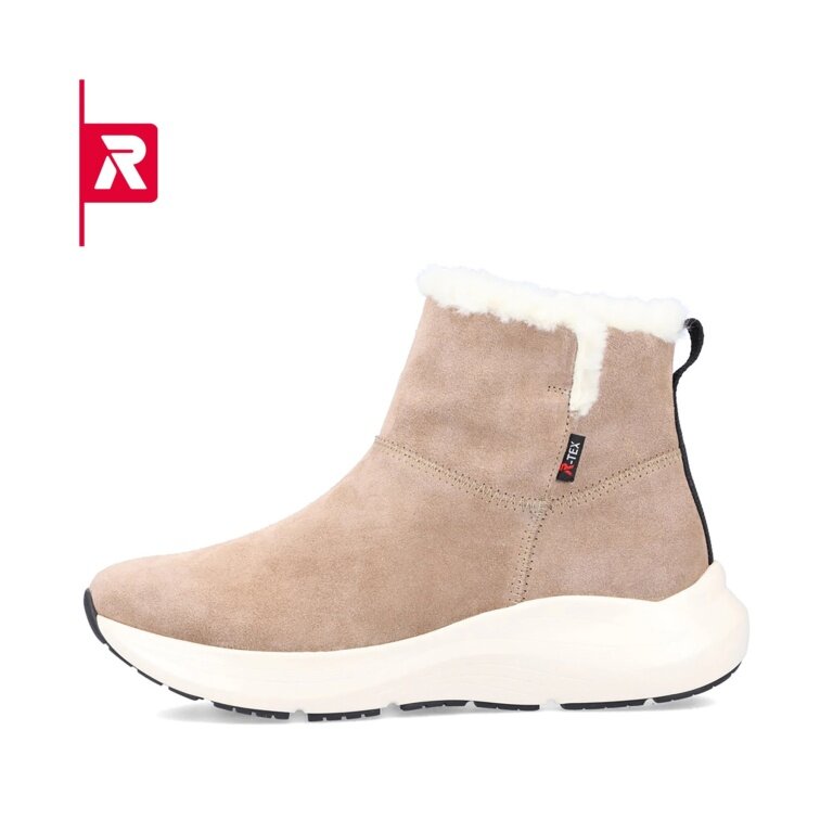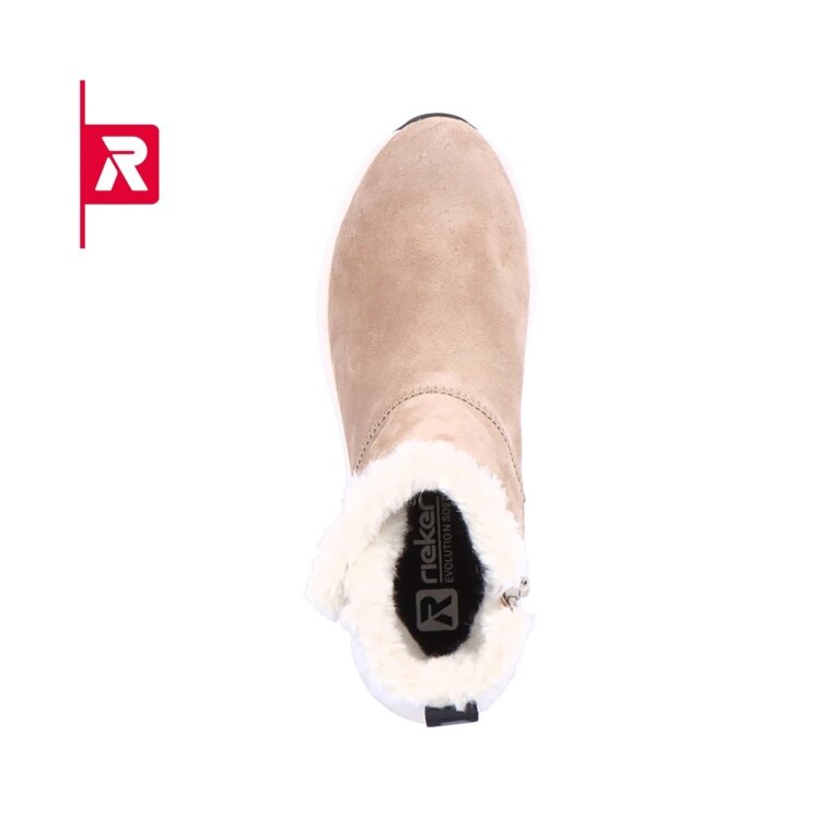 Rieker zimowe botki 42170-64 z zamszu (botki z bocznym zamkiem błyskawicznym i podszewką) beżowe damskie