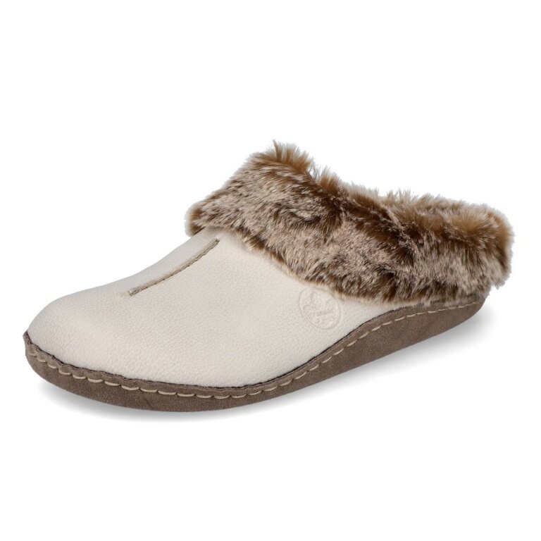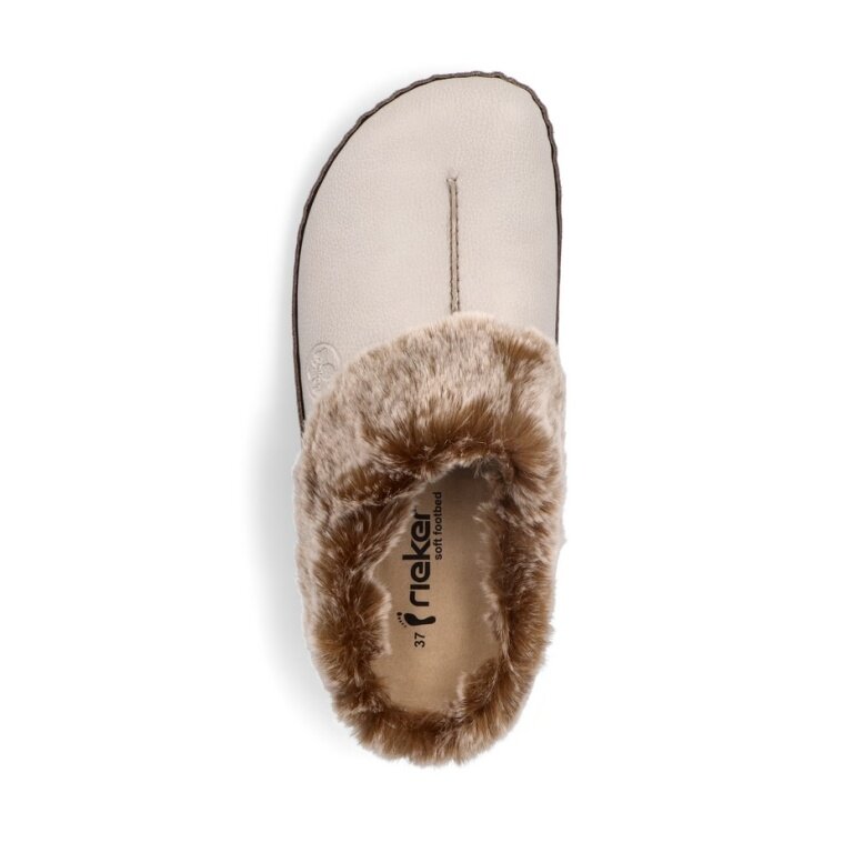 Rieker Kapcie 66390-60 (Skórzana-podeszwa) beżowo/szare damskie