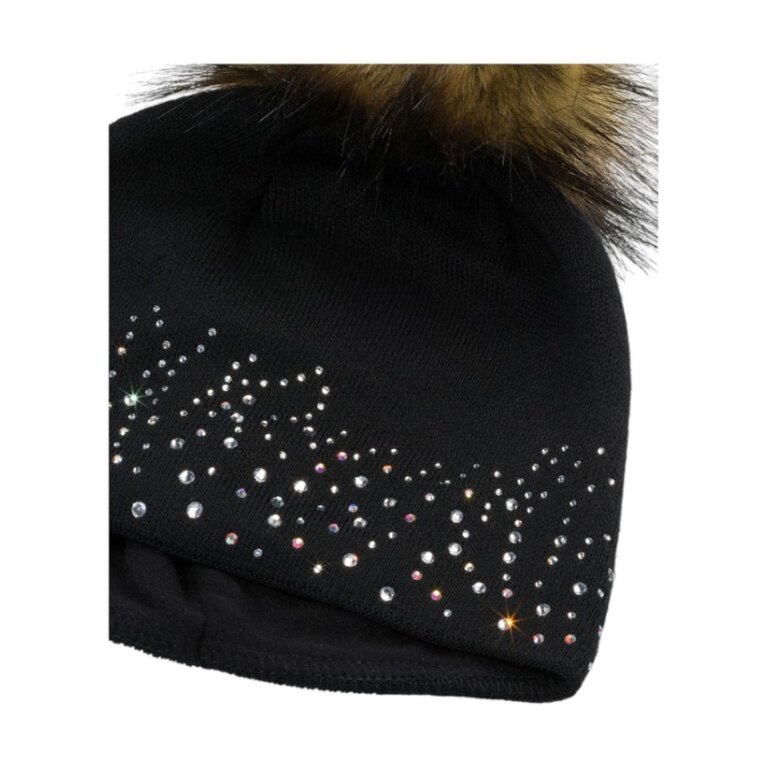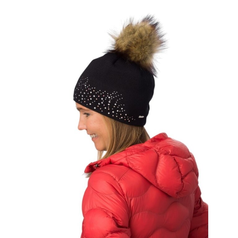 Czapka polarowa Eisbär (z pomponem) Nalin Lux Crystal - Merinomix - damska czarna - 1 sztuka