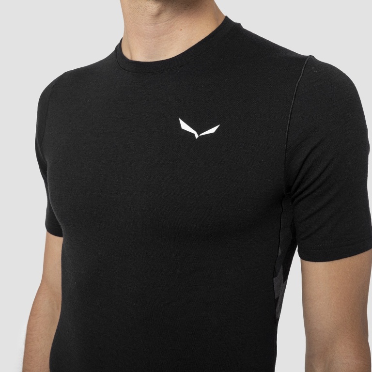 Salewa Bielizna funkcjonalna T-shirt Cristallo Warm (z wełny merino) czarny męski