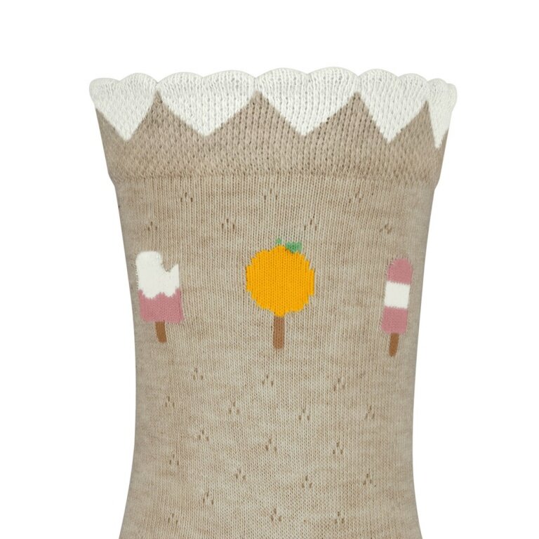 • przy tych uroczych skarpetkach dziecięcych z przyjemnej dla skóry, zrównoważonej bawełny, radość z lata jest naprawdę odczuwalna: Z boku umieszczone są motywy pysznych lodów, które uzupełniają delikatną, kobiecą strukturą siateczkową w podstawie skarpetek