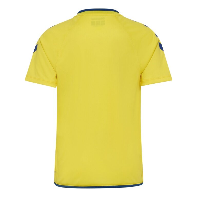 koszulka sportowa hmlCORE 2.0 (recyklingowany poliester, optymalna swoboda ruchów) krótki rękaw żółto-niebieska dla chłopców