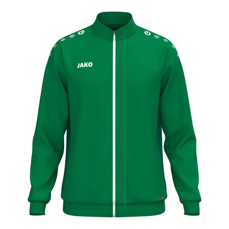 - JAKO Dots na ramieniu, logo JAKO na prawej piersi oraz zakończenia kurtki i rękawów z ribbingu zapewniają nowoczesny wygląd.