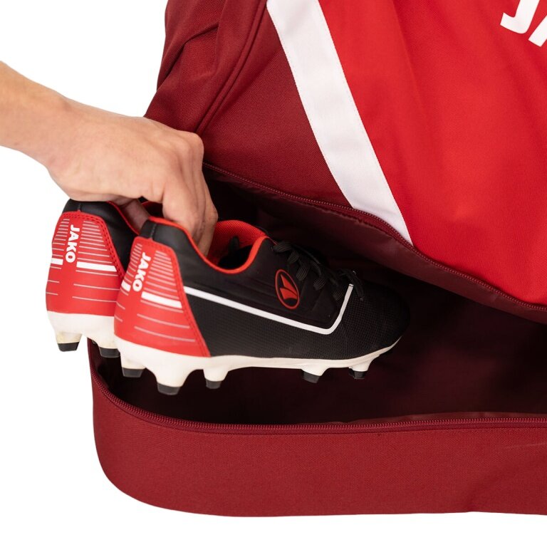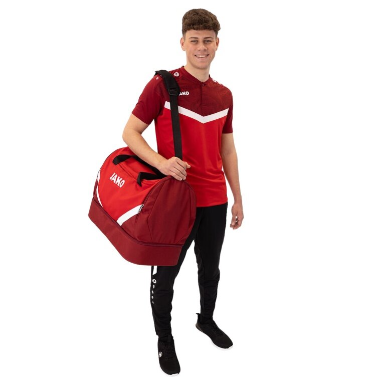 JAKO Torba sportowa Iconic z przegrodą na dno (Rozmiar M - 60 litrów) czerwony/winny - 55x27x41cm