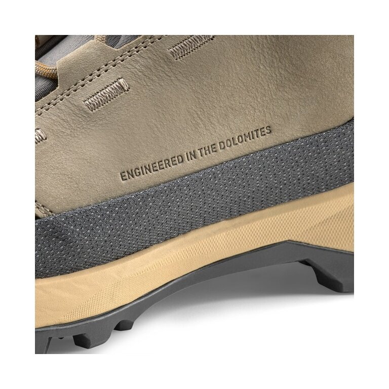 • Wytrzymały, ale jednocześnie elastyczny materiał wierzchni z włoskiej nubukowej skóry jest wzmocniony zintegrowanym systemem Wrapping Kevlar® Cable 3F w okolicy kostki oraz hybrydowym, odpornym na ścieranie tekstylnym rantem.