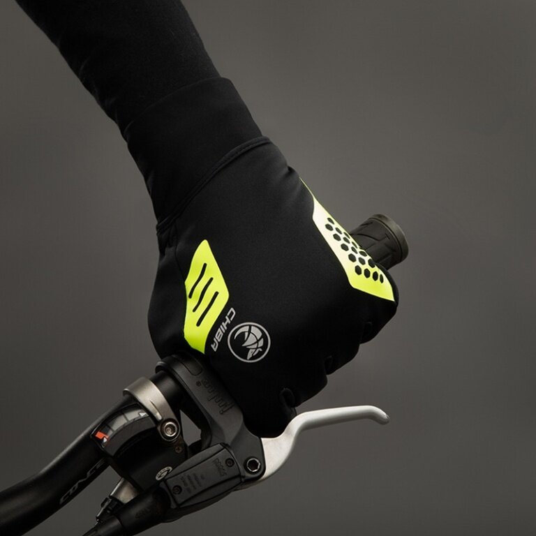 Rękawice rowerowe Chiba Winter Ice (wierzch z wiatroszczelnego softshellu) czarne/żółte - 1 para