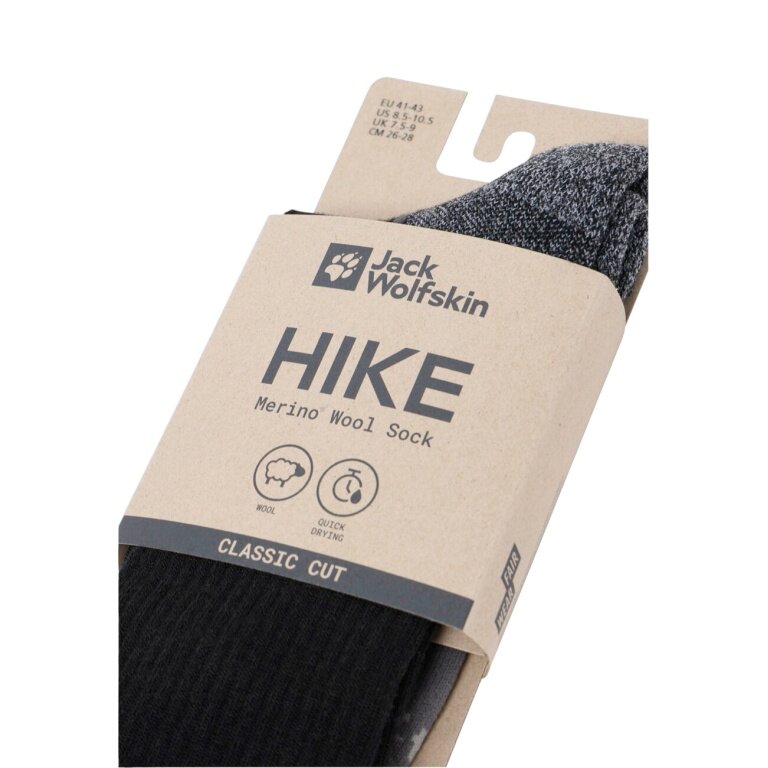Skarpety turystyczne Jack Wolfskin Hike Merino CL Crew (mieszanka wełny merino, oddychające) czarne - 1 para