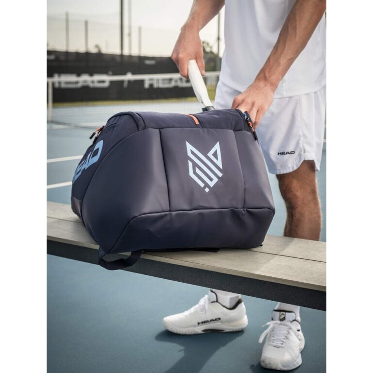 - dtorba PRO RACQUET BAG XL NV inspirowana i noszona przez Jannika Sinnera ma wyjątkowy design z osobistymi detalami, w tym pomarańczowym zamkiem błyskawicznym, który przypomina o czerwonych włosach Włocha.