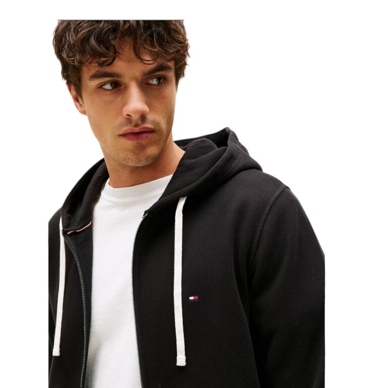 Kurtka z kapturem Tommy Hilfiger Full Zip Fleece (mieszanka bawełny) czarna męska
