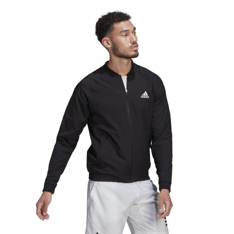 adidas Kurtka treningowa do tenisa Stretch Woven (materiał elastyczny, pochłaniający wilgoć) #22 czarna męska