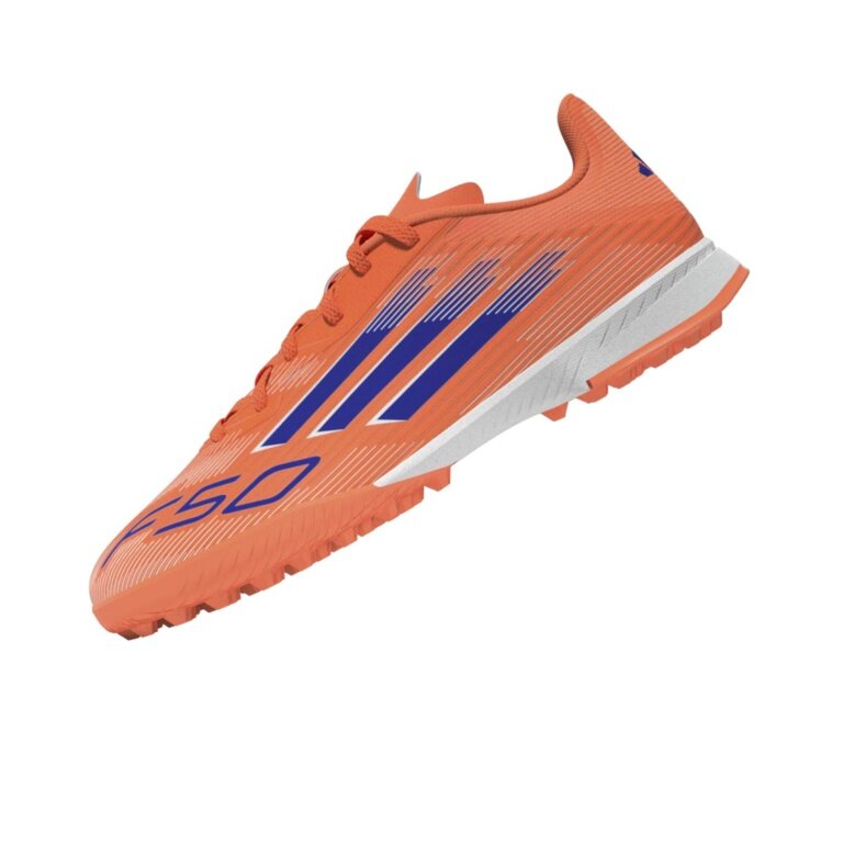 adidas buty piłkarskie F50 League TF (do sztucznej trawy, na twarde i żwirowe boiska) pomarańczowo-niebieskie chłopięce